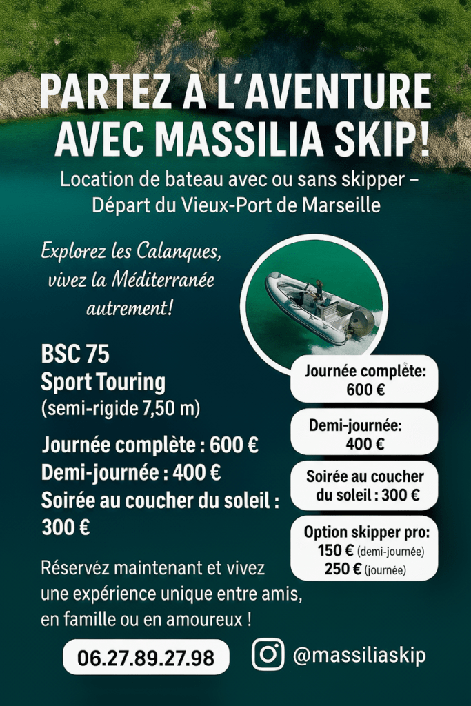 Locations de bateaux à Marseille, avec ou sans skipper professionnel. Réservez rapidement via WhatsApp et préparez votre sortie en mer sur mesure, selon vos envies et votre budget.